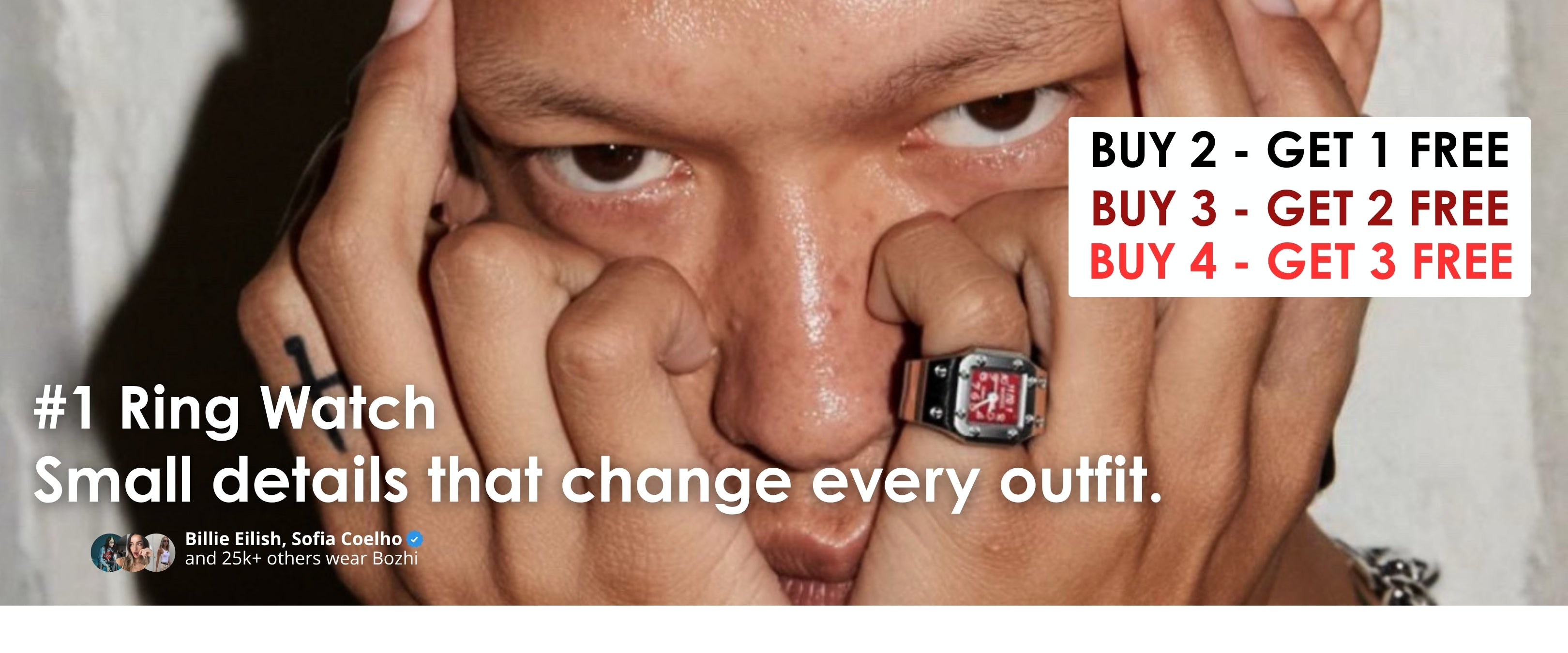 From global stars like Billie Eilish (@billieeilish) to fashion muses such as Sofia Coelho (@sofiamcoelho), Bozhi Ring-Watches are chosen by those who refuse to blend in and express their individuality through bold details.