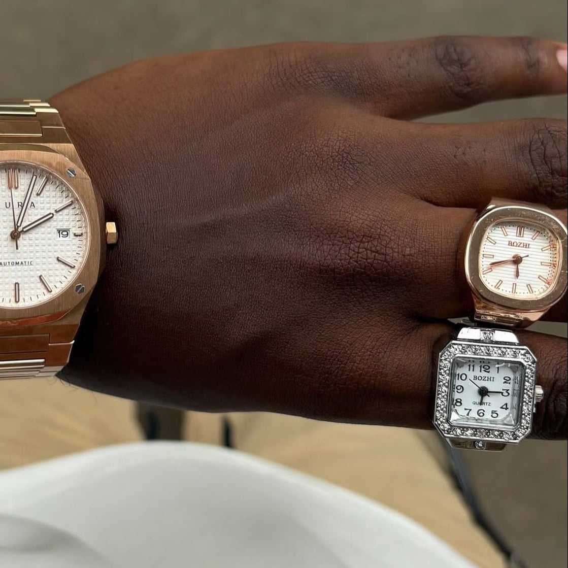 The Bozhi Ring Watch is a stylish unisex accessory designed in Milan, crafted from a durable zinc alloy and metal blend. It merges functionality with chic design, offering a unique and contemporary take on personal fashion accessories. Our rings have only one size. They are adjustable to any finger.