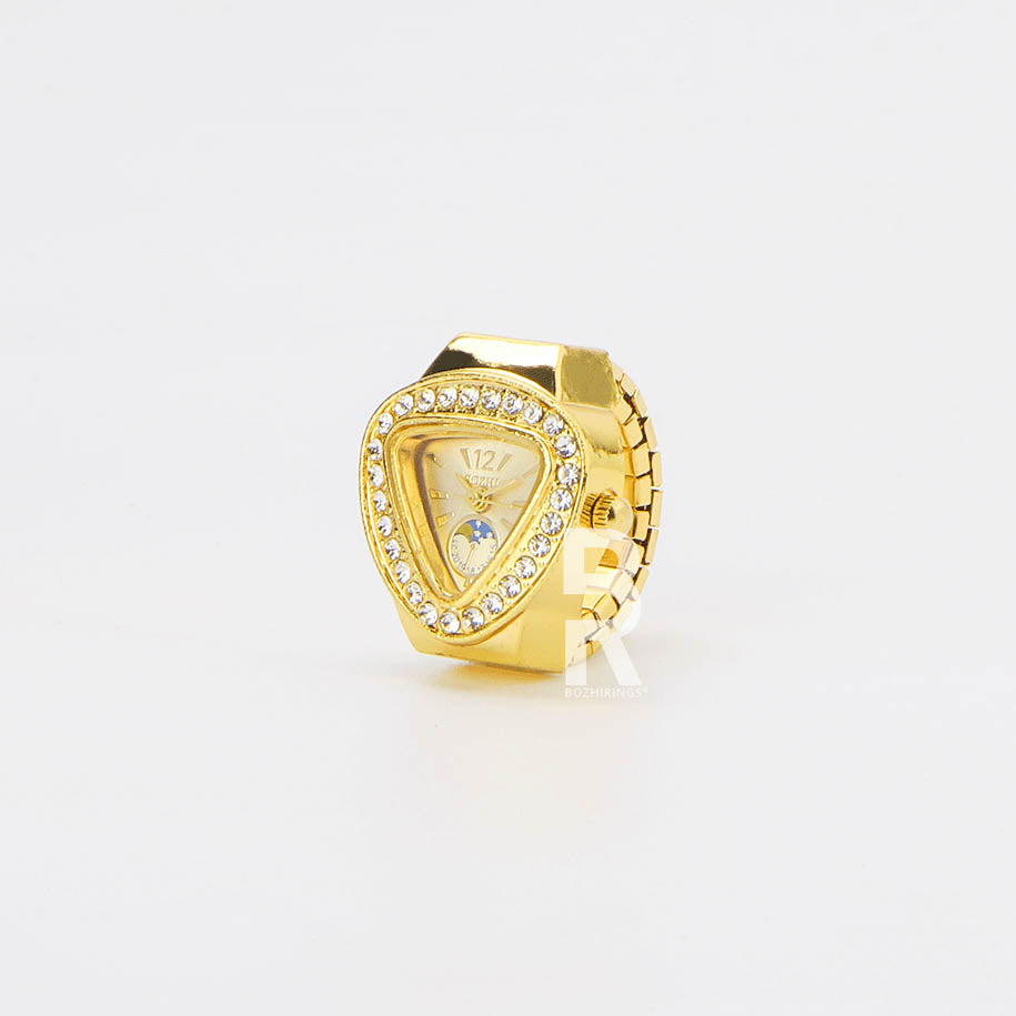 The Bozhi Ring Watch is a stylish unisex accessory designed in Milan, crafted from a durable zinc alloy and metal blend. It merges functionality with chic design, offering a unique and contemporary take on personal fashion accessories. Our rings have only one size. They are adjustable to any finger.